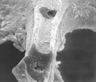Hyphe auf einer Kutikula im REM Myzel eines Moderpilzes